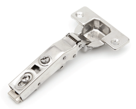 Đặc điểm nổi bật của loại bản lề này là phần tay bản lề có độ cong vừa phải, giúp cánh cửa đóng mở nhẹ nhàng, êm ái, đồng thời tạo ra một khoảng hở tinh tế giữa cánh và cạnh tủ.