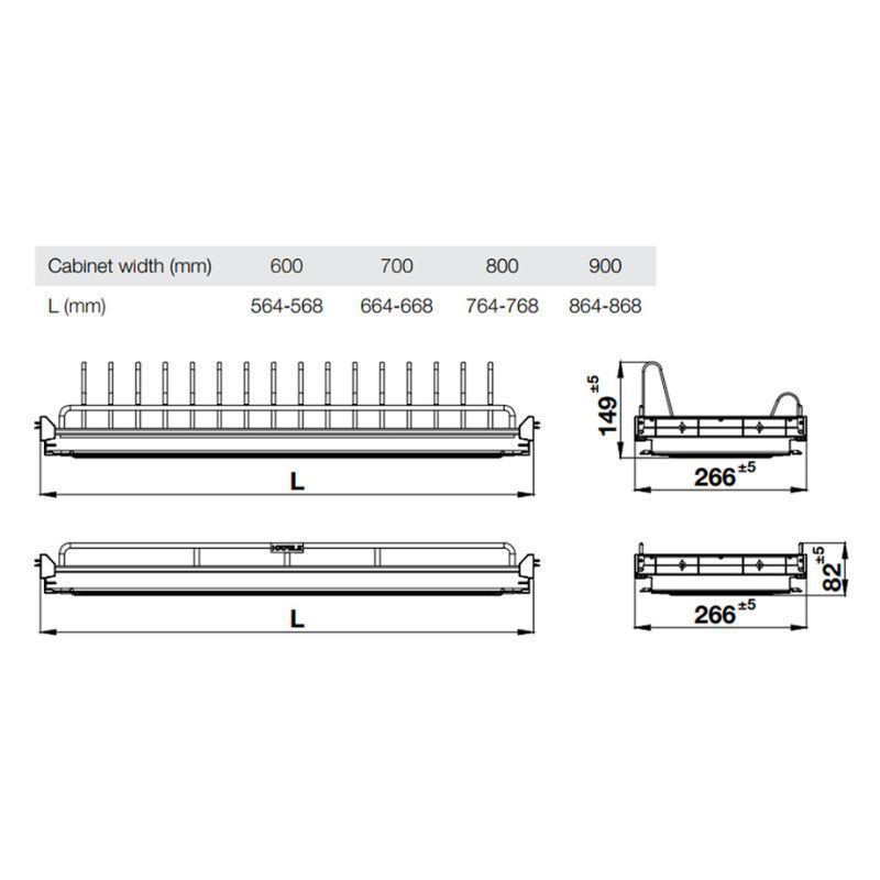 Giá bát cố định Hafele có đa dạng kích thước để phù hợp với nhiều loại tủ bếp khác nhau, phổ biến nhất là các kích thước: