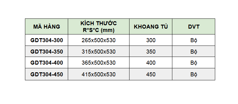 Mọi thông tin về sản phẩm được thể hiện rõ qua bảng sau: