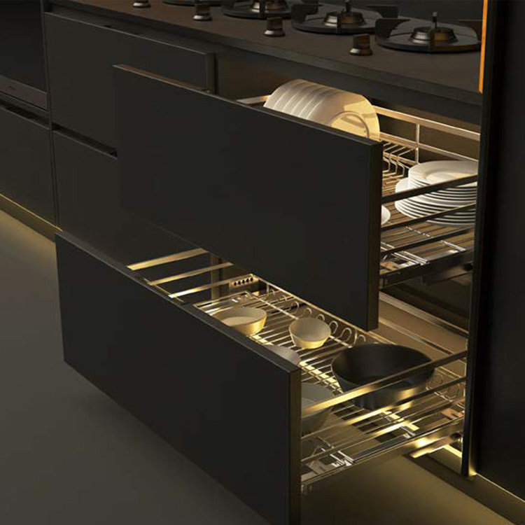 Tính năng: Chọn rổ có ray trượt giảm chấn, khay hứng nước tiện lợi và các ngăn chia hợp lý để tối ưu hóa không gian và sự tiện lợi.