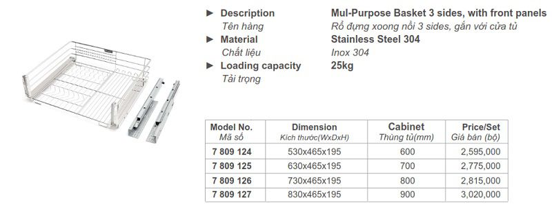 Sản phẩm có nhiều kích thước khác nhau, giúp bạn dễ dàng lựa chọn để lắp đặt cho tủ bếp của mình, bất kể kích thước và kiểu dáng.